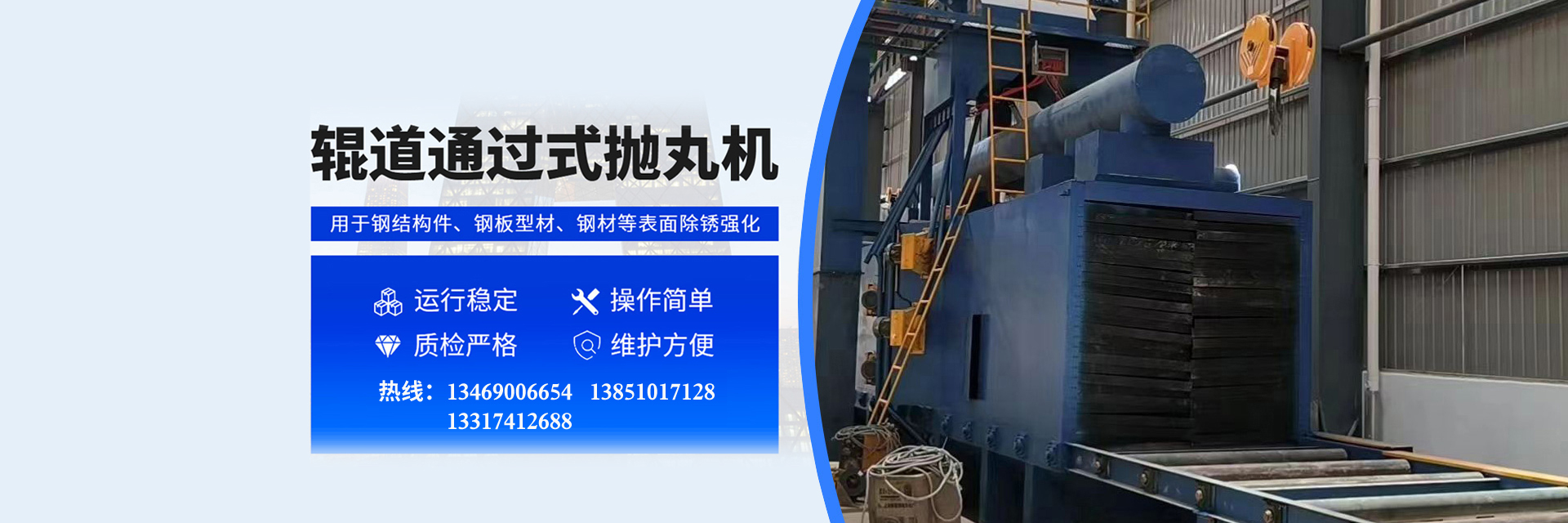 履帶式拋丸機(jī)轉(zhuǎn)臺(tái)式拋丸機(jī)吊鉤式拋丸機(jī)通過(guò)式拋丸機(jī)免振殼拋丸機(jī)車體式、臺(tái)車式拋丸機(jī)石材拋丸機(jī)混砂機(jī) 澆包 松砂機(jī)催化燃燒鋼板預(yù)處理線
